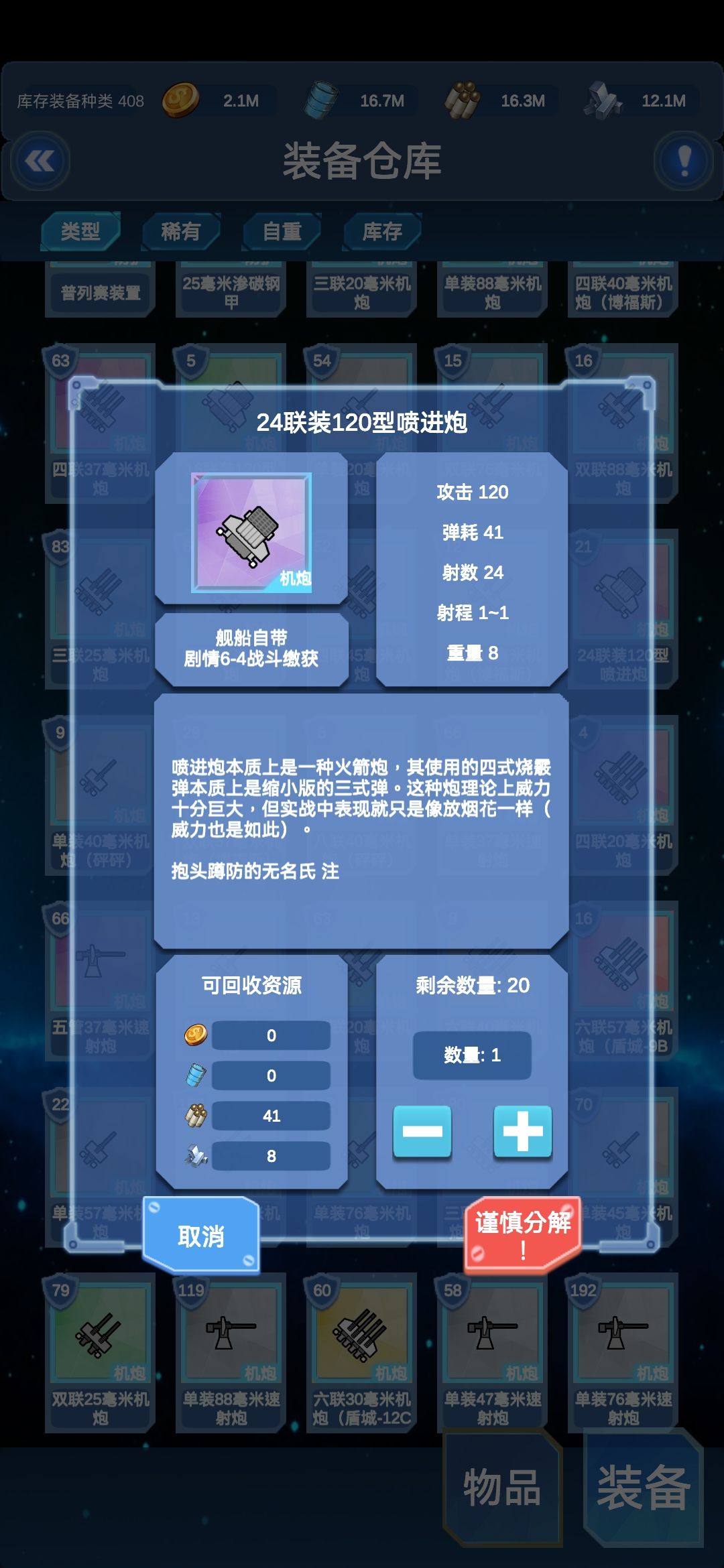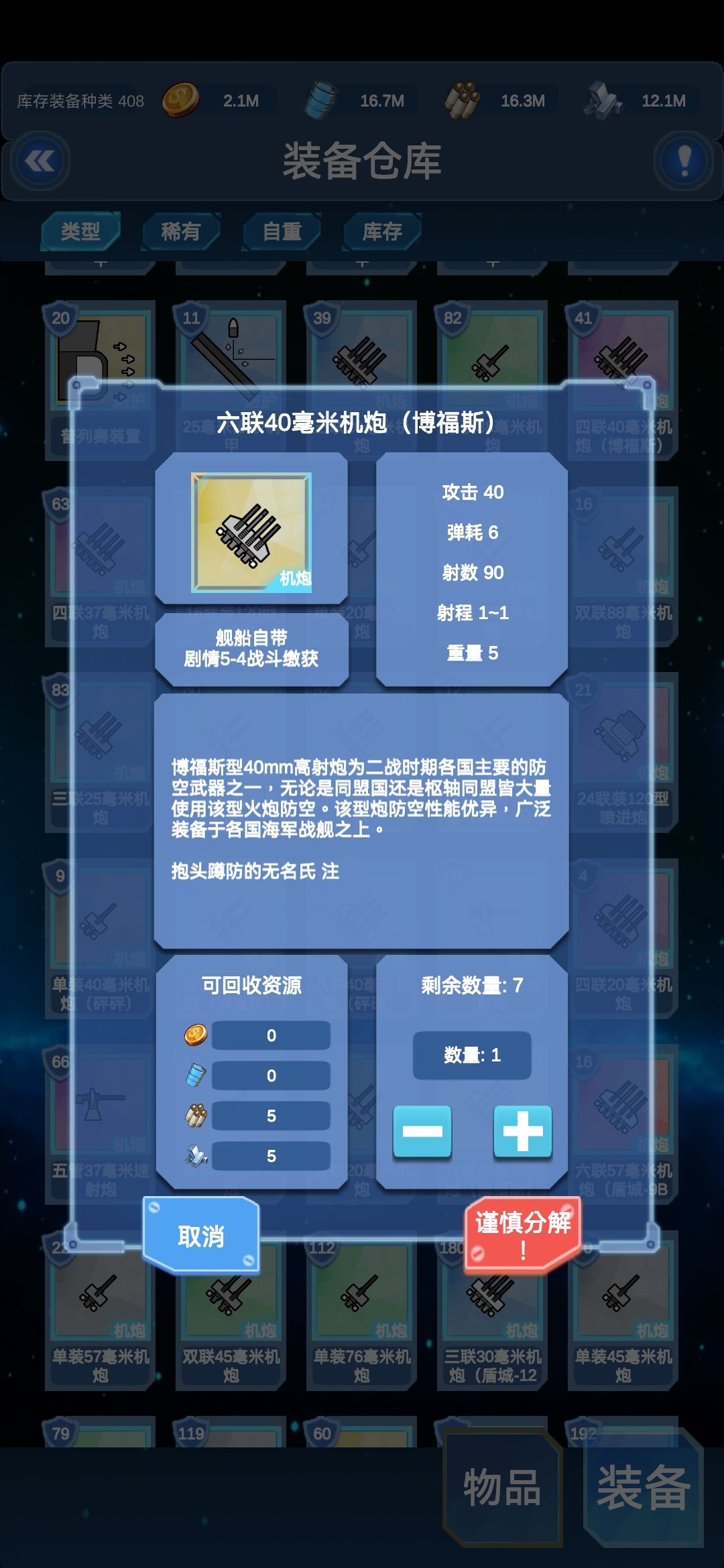 先说作者,我喜欢盾城12C。因为它有极高的性价比。首先,它重量轻,是上面5款机炮中最轻的。不会因为重量太重而装不了(这样的情况很少发生)其次,它还是5款机炮中唯一可以从商店里获得的机炮。只要你财大气粗,就可以大量装备。其他的,一个要刷副本,且这个副本现在没了。也就是说现版本只有16个。另一个要刷隐藏关,有时候你打完隐藏关可能也就几个机炮。还有两个靠关卡,但是作者不会因为几个机炮而打打杀杀,作者喜欢刷图纸。再然后,它射数高,其他4款机炮没有一个射数能超过100。而它的射数竟然是120!意味着它可以在短时间内发射大量甚至海量的炮弹。(有时候,一艘驱逐舰的命运就在它手上,只要装10门以上,1000发以上没问题,按命中三分之一来计算,每发伤害是6,也有1800的伤害了,不沉也大残。)这就是我喜欢盾城12C的原因。你们可能有不同想法,欢迎来评论。