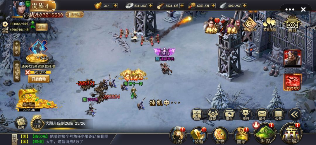日常队伍用于挂机界面和主城界面的玩法使用,如挂机界面的每次升级的5次挑战解锁更多经验的挂机加成、血战群雄,主城界面的过关斩将、材料副本、名将副本等,挂机队伍可以按住队伍左侧的头像图标拖动进行队伍顺序的变动,操作入口在游戏界面的右下角_阵型。