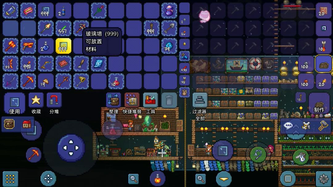 4.用宝石做花窗玻璃在前期是很有效的刷钱方法。2个沙子在熔炉处烧成玻璃,1个玻璃可做成4个玻璃墙,宝石与玻璃墙按1:20合成花窗玻璃(钻石没有花窗玻璃)。此合成较为廉价且花窗玻璃售价较高。将花窗玻璃卖给幸福值较高的NPC可以获得不少金币。这种刷钱只需要宝石和大量沙子,可以去沙漠用铲子之类挖。