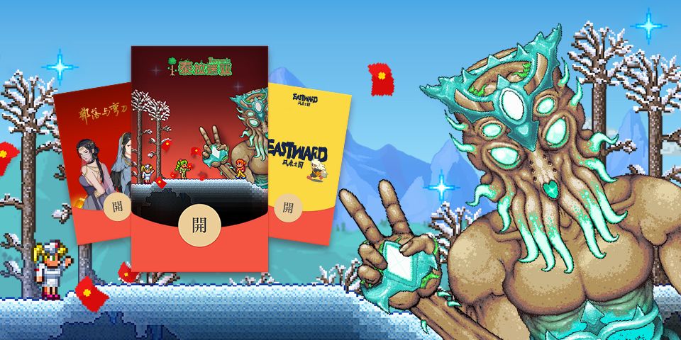 所以今年我偷偷塞上了……四份游戏!在每日获奖里,会有一位小伙伴收到红包侠送上的游戏欢乐桶:风来之国*1+泰拉瑞亚*1+部落与弯刀*1+人类跌落梦境*1