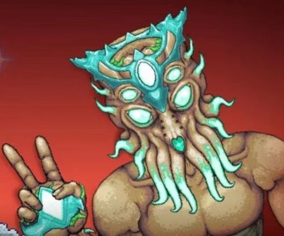 有趣的漂浮型敌怪,会漂浮着撞向玩家试图造成伤害。在死亡后能分裂成四个小星细胞,小星细胞在一段时间之后会成长成星细胞。套娃的特性使得我们可以仅利用一个星细胞来击破护盾:勾引一个星细胞到安全的地方,用物块把自己围起来(或者把星细胞围起来),用穿墙武器打败星细胞而不去击败小星细胞,而是等它们成长。利用此法则可以低风险击破星尘柱的护盾。