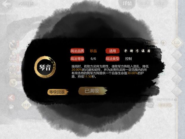 蔡琰战法有2个效果,一是混乱敌军,二是使友军获得护盾。根据侧重点不同,玩法也可分为两种。