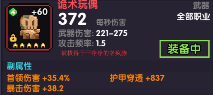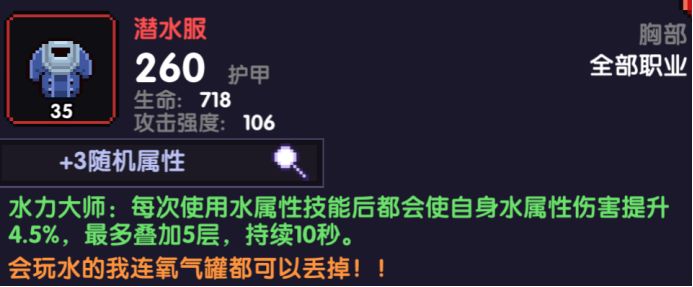 胸甲自然是选择我们的潜水服,boss战的时候你甚至可以开关一次灵目来更快堆叠潜水服buff。