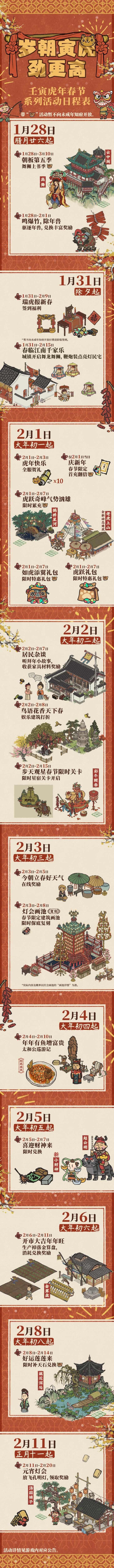 1月28日起,《江南百景图》虎年新春系列活动即将开启,丰富福利活动等您参与。