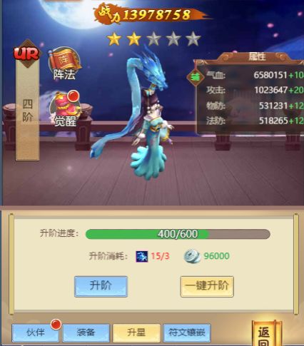 伙伴可以通过消耗神识进行升星。升星可以提升属性以及获得新的被动技能和提升主动技能等级。