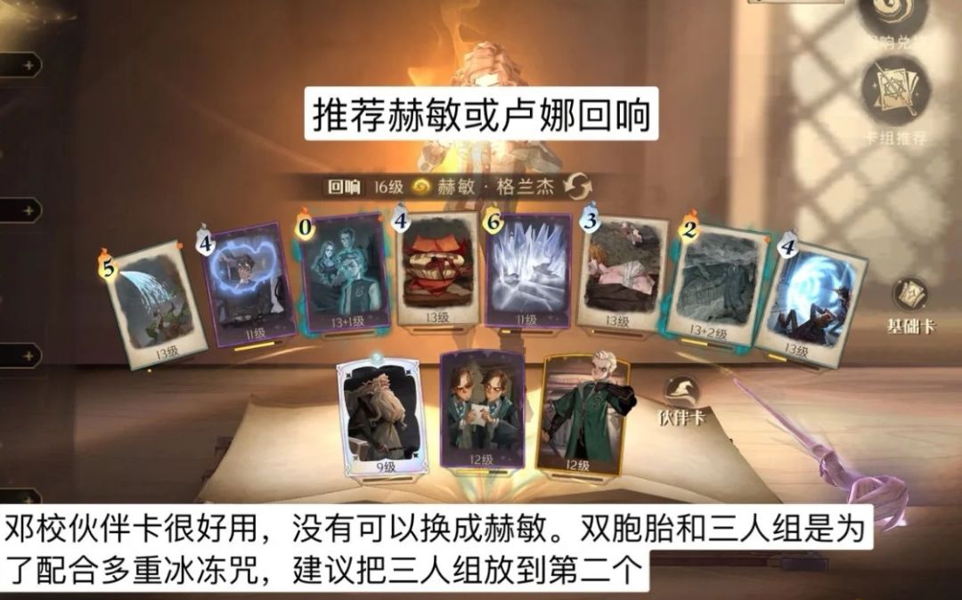 推荐:赫敏×2+斯内普。初始步子下调为25张,红圈来了再挪步子。