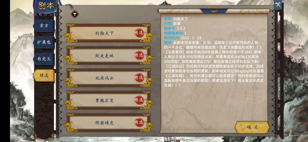 最新版本中,剑指天下1.0.2已上线到精选剧本中,大家都玩了吗?体验如何,关于剧本你有什么更好的建议吗,欢迎大家留言。