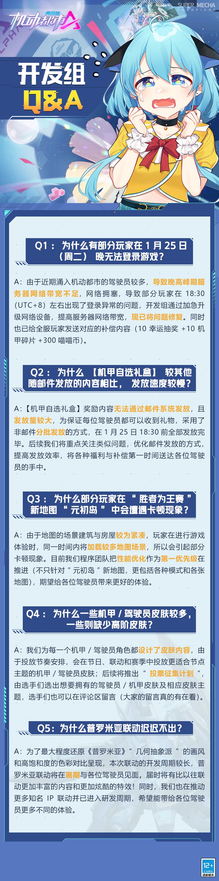 针对近期部分玩家出现的登录异常,机动都市开发组密切关注并已于昨晚加急完成了修复;