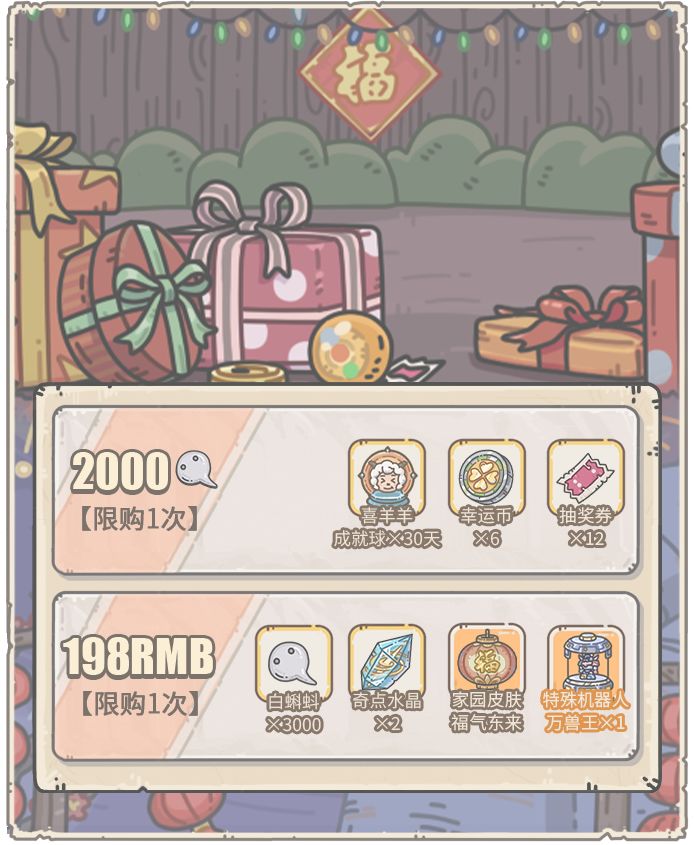 1、活动期间,可消耗活动货币羊村金币,在美羊羊商店中兑换奖励