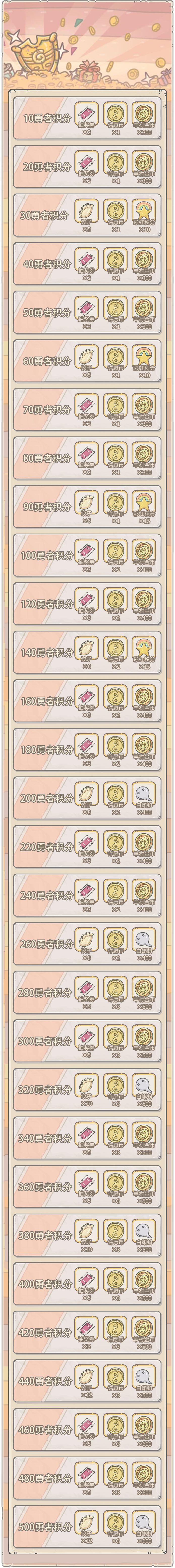 1、活动期间,开放勇者积分奖励、彩虹积分奖励