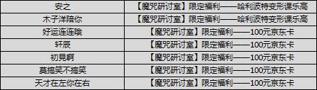 【魔咒研讨室】限定福利——100元京东卡(5份)