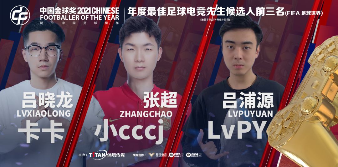 在中国国家男子足球队即将踏上2022年新征途之际,以“树立中国足球榜样”为主旨的2021中国金球奖评选投票前三名新鲜出炉。与往年一致,在大家关注的足球电竞领域,主办方体坛传媒将联合腾讯FIFA品类游戏,评选出了:“FIFA足球世界”年度最佳足球电竞先生、“FIFAOnline4”年度最佳足球电竞先生、年度最佳足球电竞俱乐部三大足球电竞相关奖项。