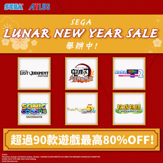 今日(1月26日),世嘉股份有限公司宣布PS Store与任天堂eShop于2022年1月26日至2月9日期间举办“农历春节特惠活动”,部分贩卖中的PS4/PSt5/Nintendo Switch作品将以优惠价贩卖,感兴趣的玩家可以点击此处进入优惠页面。
