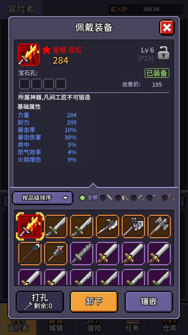 7、新增武器,防具,戒指 红色品质和星耀品质的被动特技