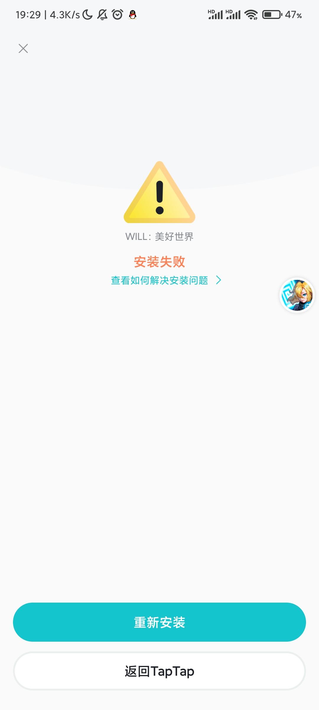每次安装都是从TapTap安装准备,跳转到系统安装界面,立刻跳回TapTap安装界面,然后安装失败,重试再次跳转系统安装界面,不再跳回,正常安装。