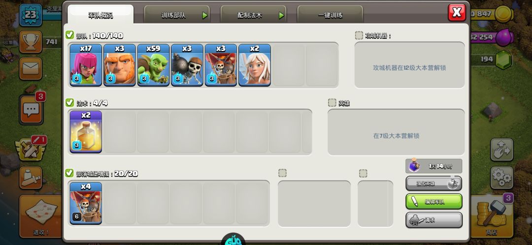升本第二天,3农达成,哥布林炸弹等级升级完成,金水罐子等级还差不少,目前就等训练营升级好气球,就准备升本,4本送的3天福利没必要都享受