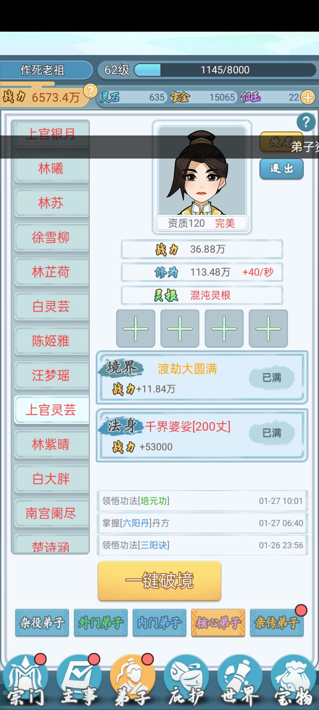 主事里只升境界不升法身,灵石奇缺,升弟子法身和功法/炼丹级别,要加战力可以雇杂役炮灰