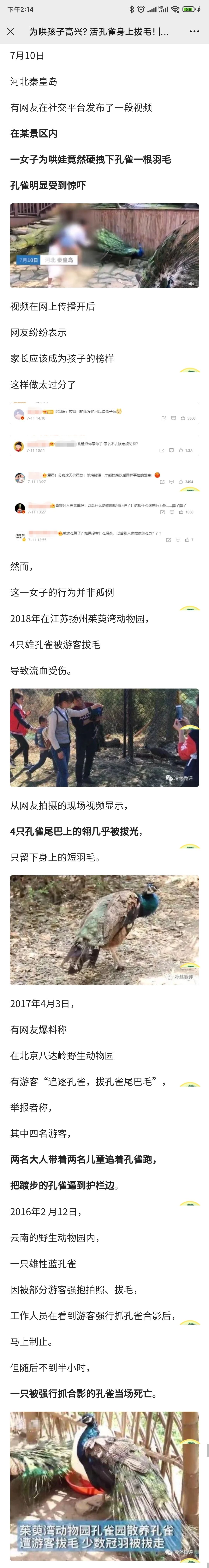 以上都是错误的行为,孔雀那么可爱,不要去它们的毛毛哈!在游戏里拔拔就行了,祝大家新年快乐!