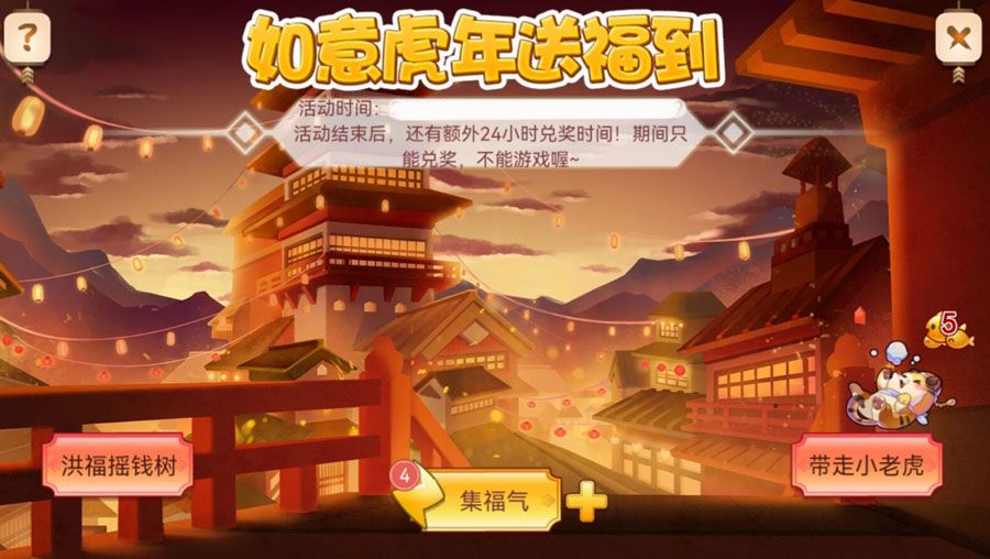 1、本活动分为二部分:集福气、洪福摇钱树、带走小老虎(包括奖励兑换环节);