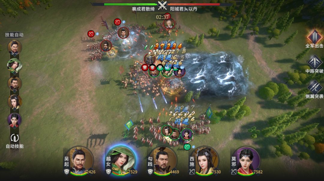 七雄的常规战斗是半即时方式,在释放技能时会有时间停滞效果提供给君主技能释放思考,但在沙场点兵中我们探索性的开放了完整即时的战斗方式!双方君主战斗操作完全动态化,让战局走势更加灵活激烈,战场变化也更加多样!
