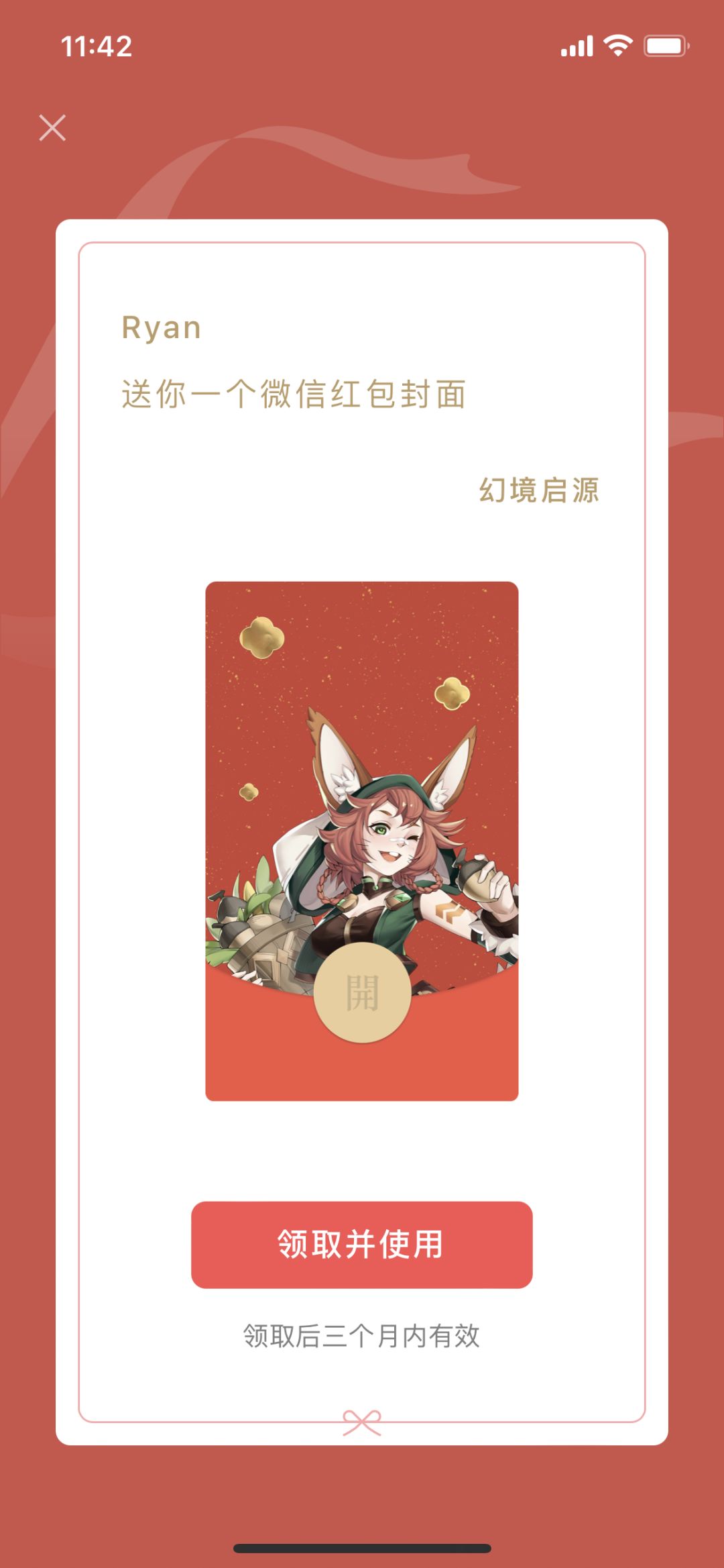 第三步:点击“领取并使用”即可拥有小栗红包封面哦