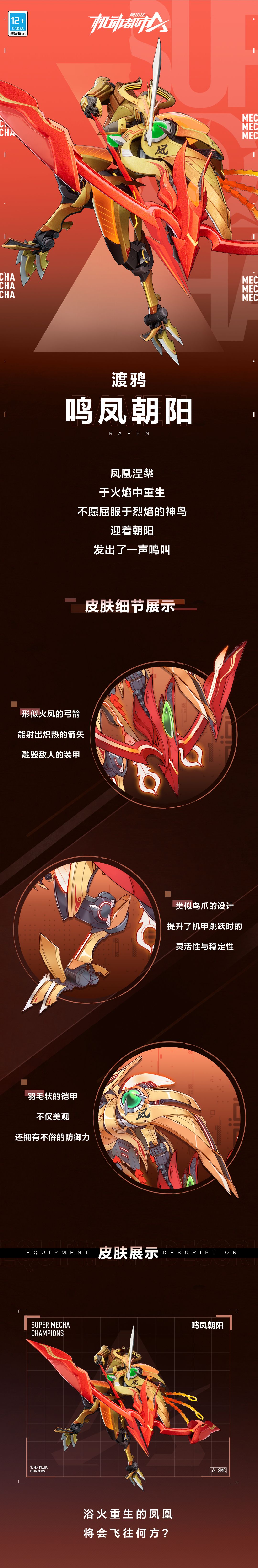 一起来看看渡鸦S+级皮肤【鸣凤朝阳】的皮肤细节展示吧~