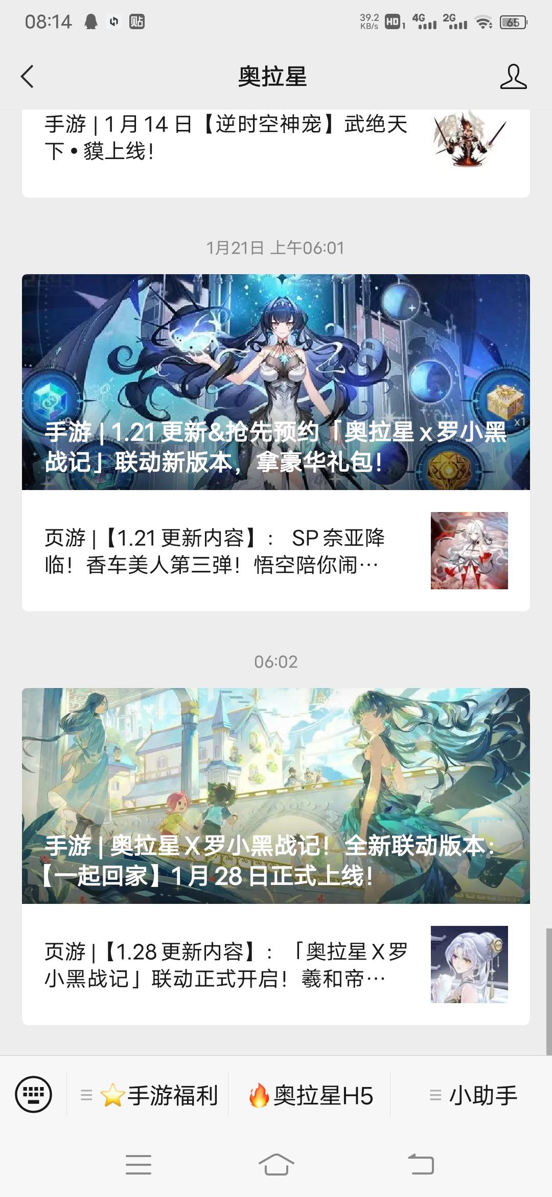 打开微信关注“奥拉星”,进入h5页面