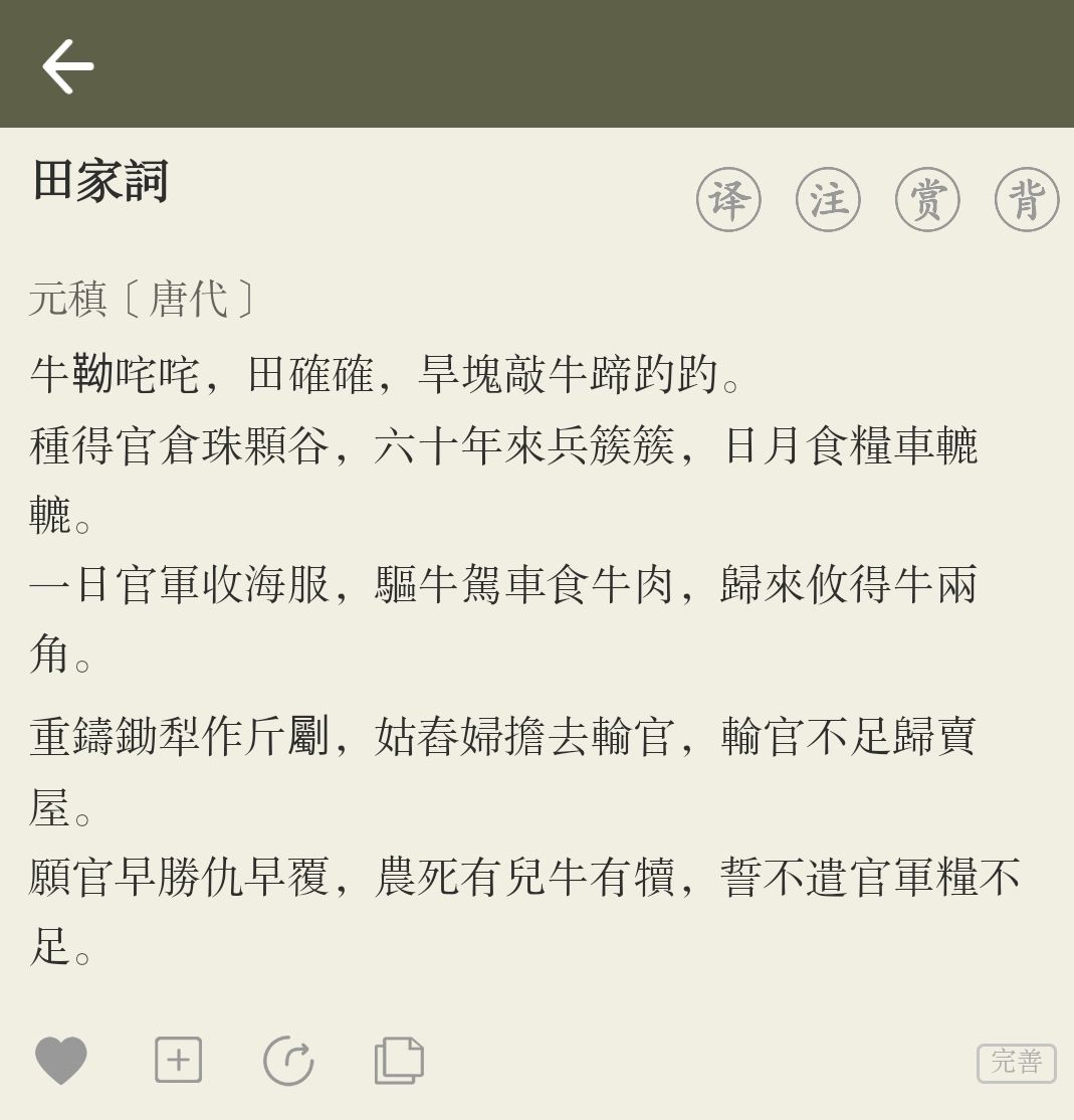 《田家词》:重铸锄犁作斤劚,姑舂妇担去输(游戏里是“轮”)官,输官不足归卖屋。