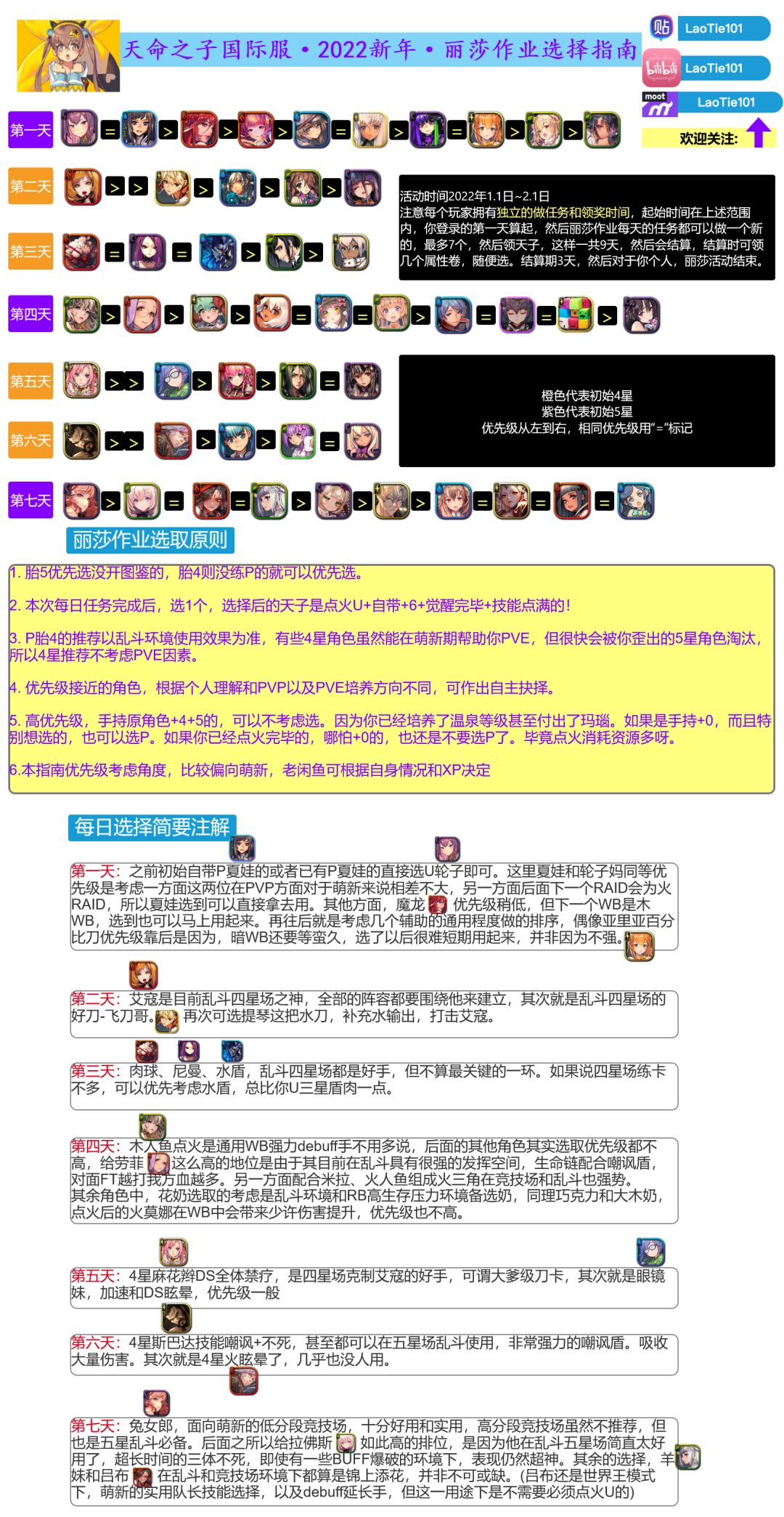 节奏榜,活动攻略,丽莎特别作业,点火推荐,新角色评价,基础术语等,后期不定期更新