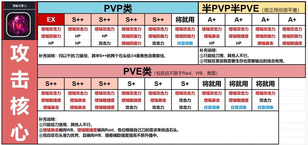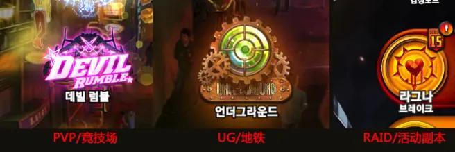 6:WB、RAID、PVP、UG WB(世界BOSS)、RAID(活动副本)、PVP(竞技场)、UG(地铁)