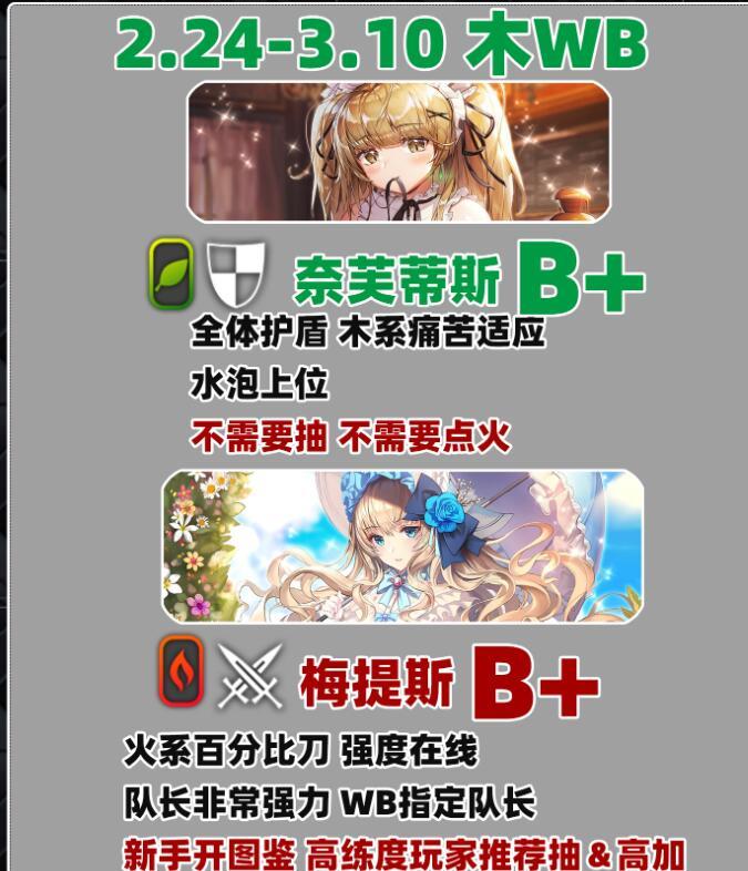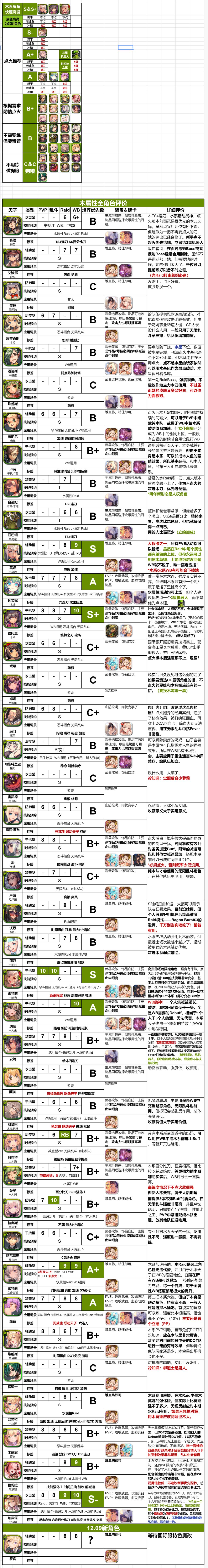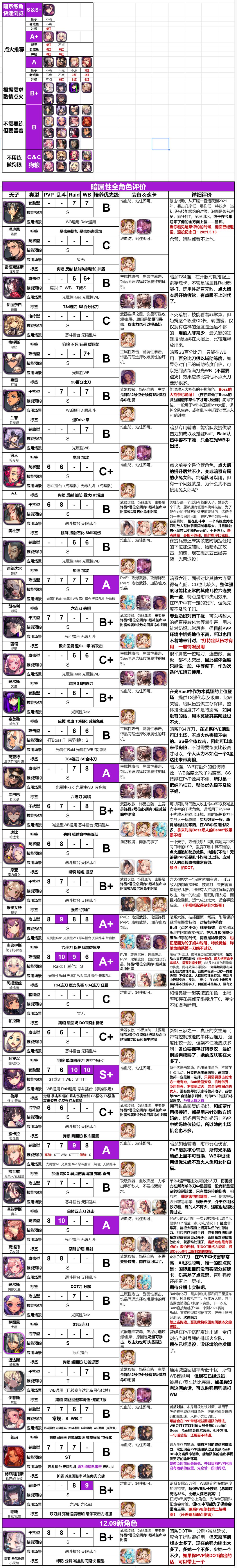 登场新角色和暂未登场新角色评价(来源于国际服攻略指定大佬土星):