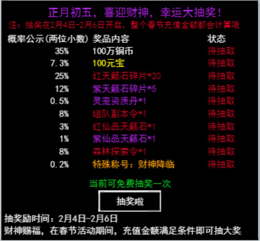 活动六:正月初五,喜迎财神,幸运大抽奖
