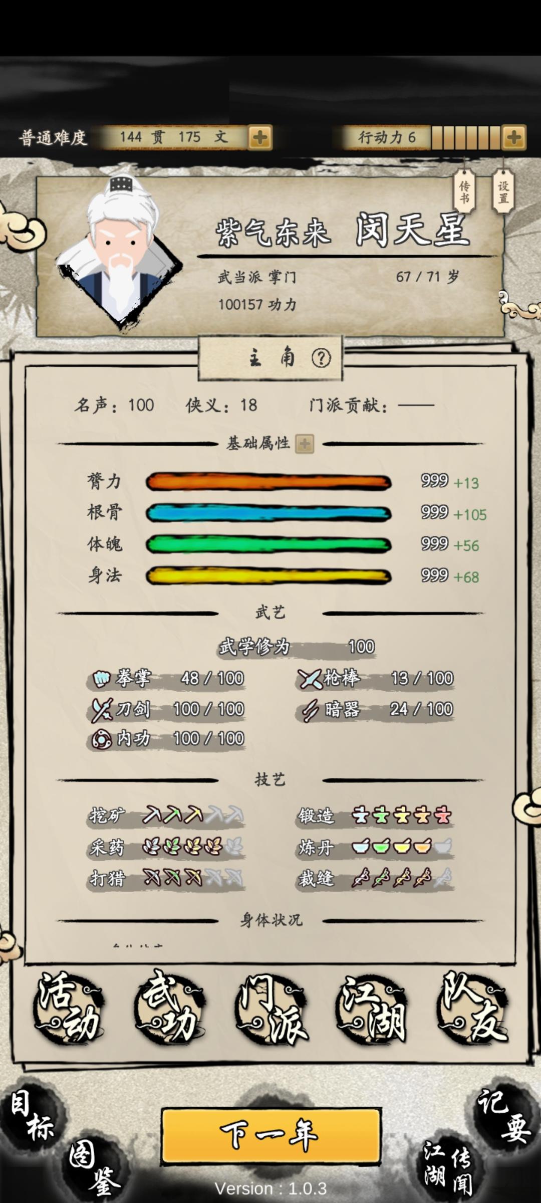 萌新一个,昨天刚入的坑。 一直以来都喜欢这种仙侠类。这个游戏作者可能在批判社会的险恶。因为如果你老老实实玩,根本玩不下去。第1次完蛋了,这是第2次。开局特别谨慎,后面到快4万战力的时候去帖子找捷径,然后发现得去到处砍人,金雁心法和桃花谷的那个剑法基本上前期很容易获得(你去挑战长老啥的给三贯多,学攻法才一贯,运气好两次就会了)后面找小龙女和杨过还有令狐浪当打手,最后面在搞搞高战基本普通目是可以随便过的。