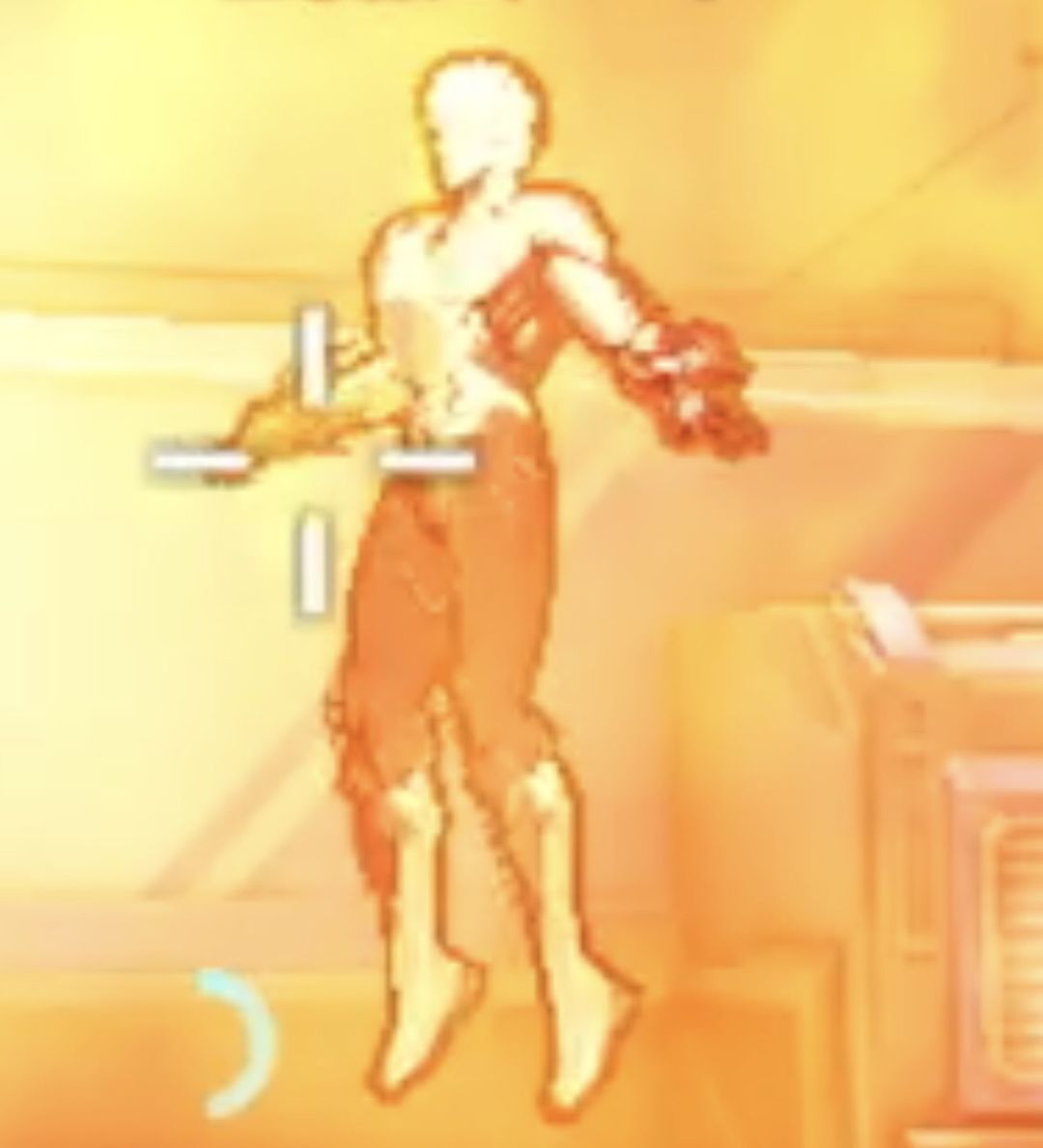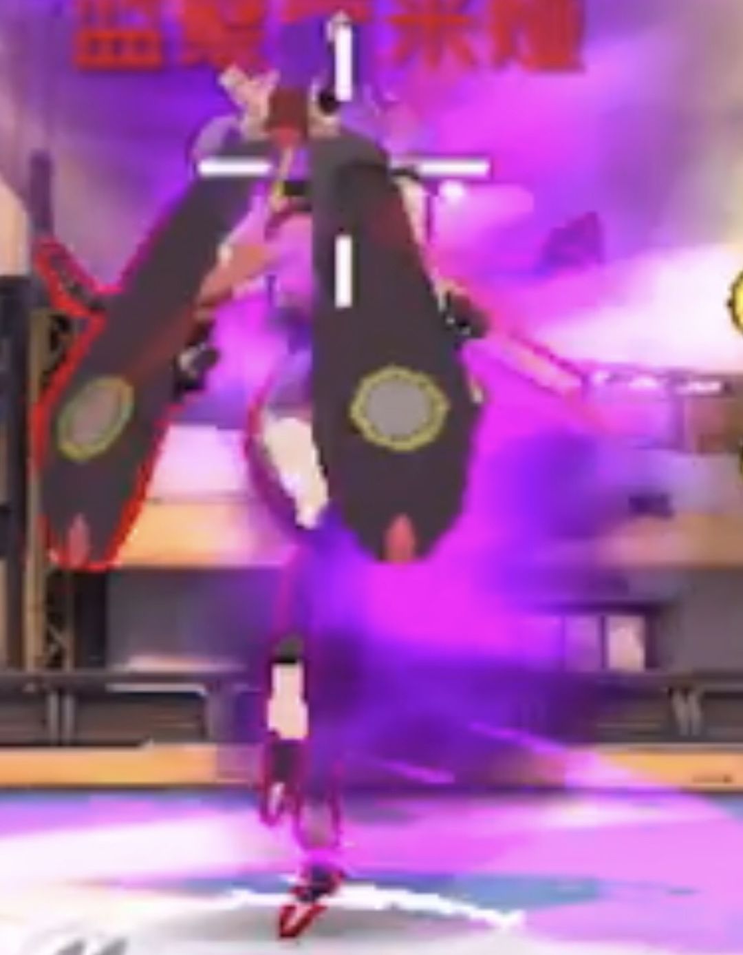 1.向前倾斜并伴有乱码特效:闪现并在短暂延迟后放出附带中毒效果的能量炮