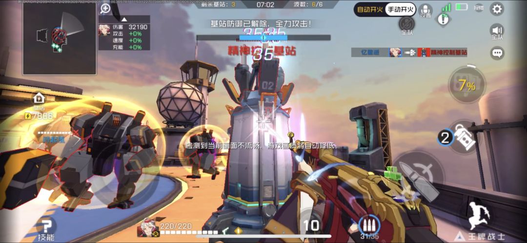 机甲打法:优先打绿色回血机甲,接着红色斩杀机甲,然后增伤机甲,最后防御机甲。如果有机甲进入米亚体内成功强化米亚则会释放一个必杀技能,(伤害应该是由斩杀机甲决定)至少可以直接秒杀一个脆皮。四个机甲都被打掉则会立刻解除金身。所以机甲一定要越快打完越好。