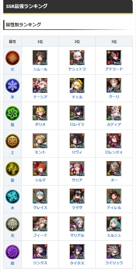 各属性SSR强度节奏榜: