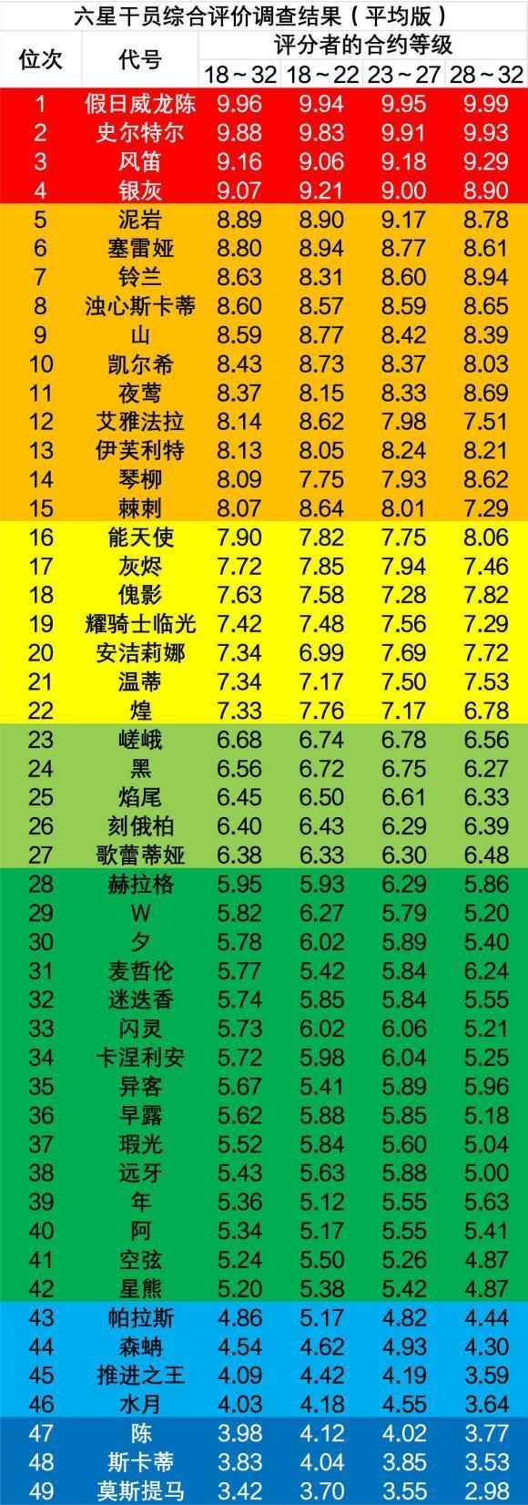 国服49个六星干员的节奏榜