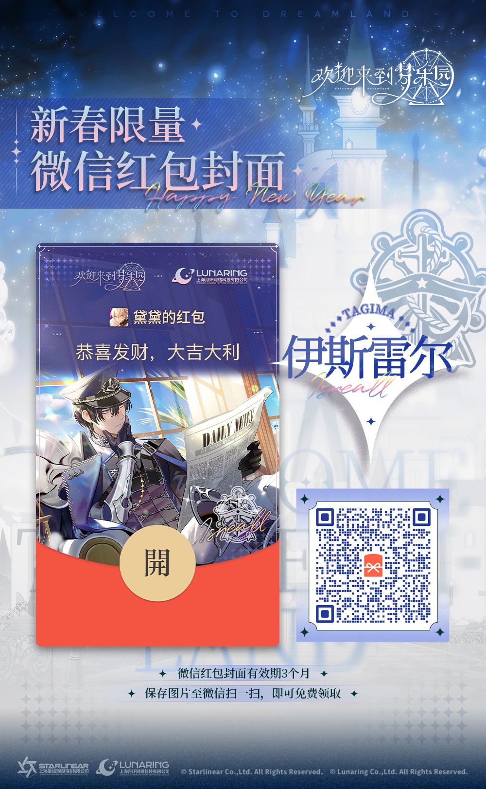 非常感谢大家对《欢迎来到梦乐园》微信红包封面的喜爱!我们决定特别追加一批红包封面,将在1月29日18点开放领取。原帖内微信红包封面的领取图已替换,领取方式不变。祝各位乐园管理者新年快乐,心想事成~