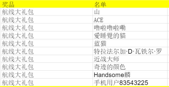 船长们好,开奖时间到啦~ 恭喜以下船长获得活动奖励,请在7天内添加发奖大使QQ (692639596) 领奖,我们将在30个工作日内发奖(如出现添加一天仍未通过可进入发奖大使QQ空间留言,留言内容:活动名称以及中奖人QQ。)