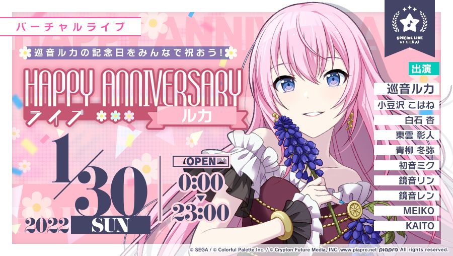 北京时间1月29日23:00起举办「HAPPY ANNIVERSARY LIVE 流歌」虚拟演唱会