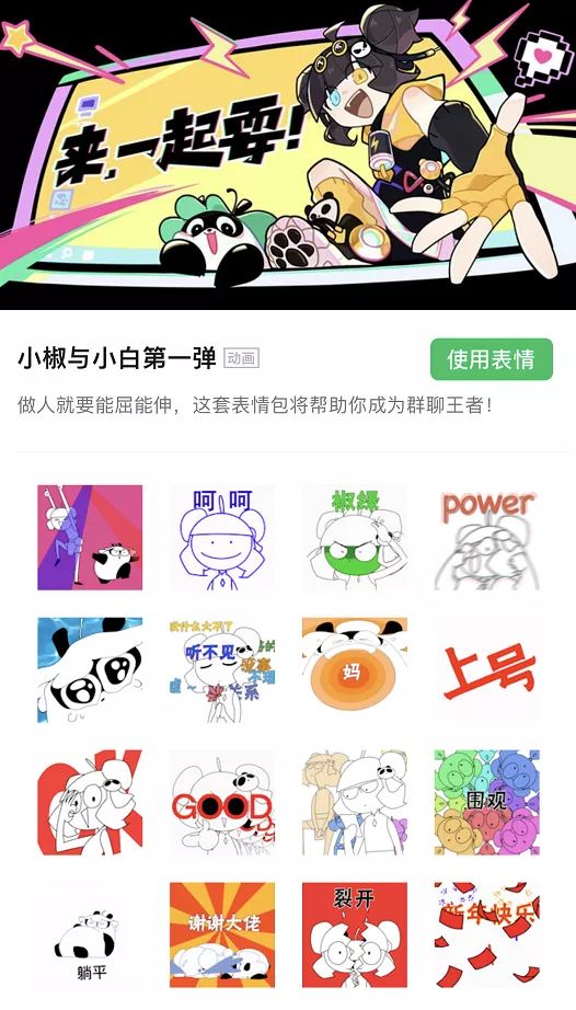 1:忍忍点击微信下方按钮【我】→【表情】→搜索栏搜索【小椒与小白】即可将这套表情收藏至微信啦!
