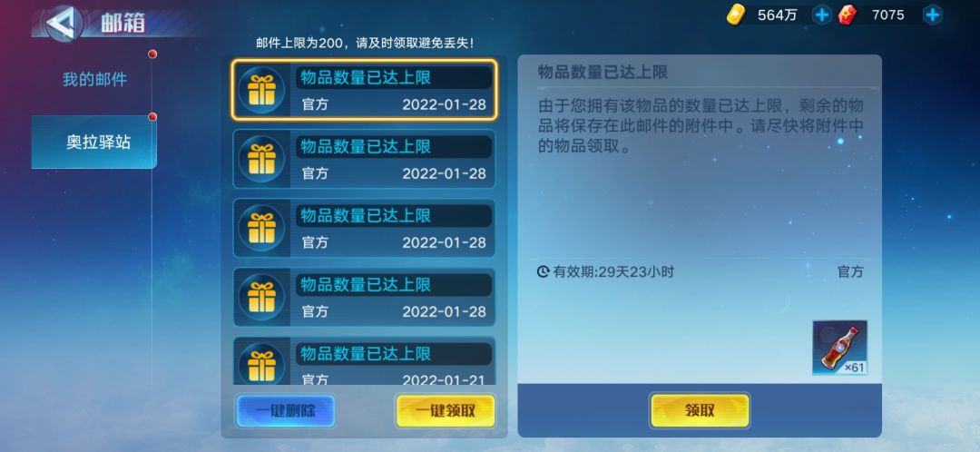 咱快乐水能不能不设上限呐,要不你把快乐水跟其他奖励的邮件别放一起好吗,我快乐水真喝吐啦(இωஇ)