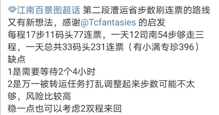 漕运第二段省步数快速刷连票刷钱的路线又有了新的想法