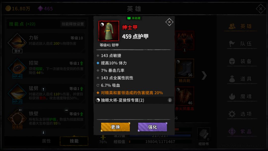 然而惇哥居然还是比诸葛先发育起来了,这个进体帽子真是救大命了。现在惇哥2件进体套3W血,还差一个火转魂,一个+1就算初步成型啦,这个强度100层BOSS都照样砍了,快点慢点的区别(话说回来了,没有火转魂我惦记那个+1干啥呢?)