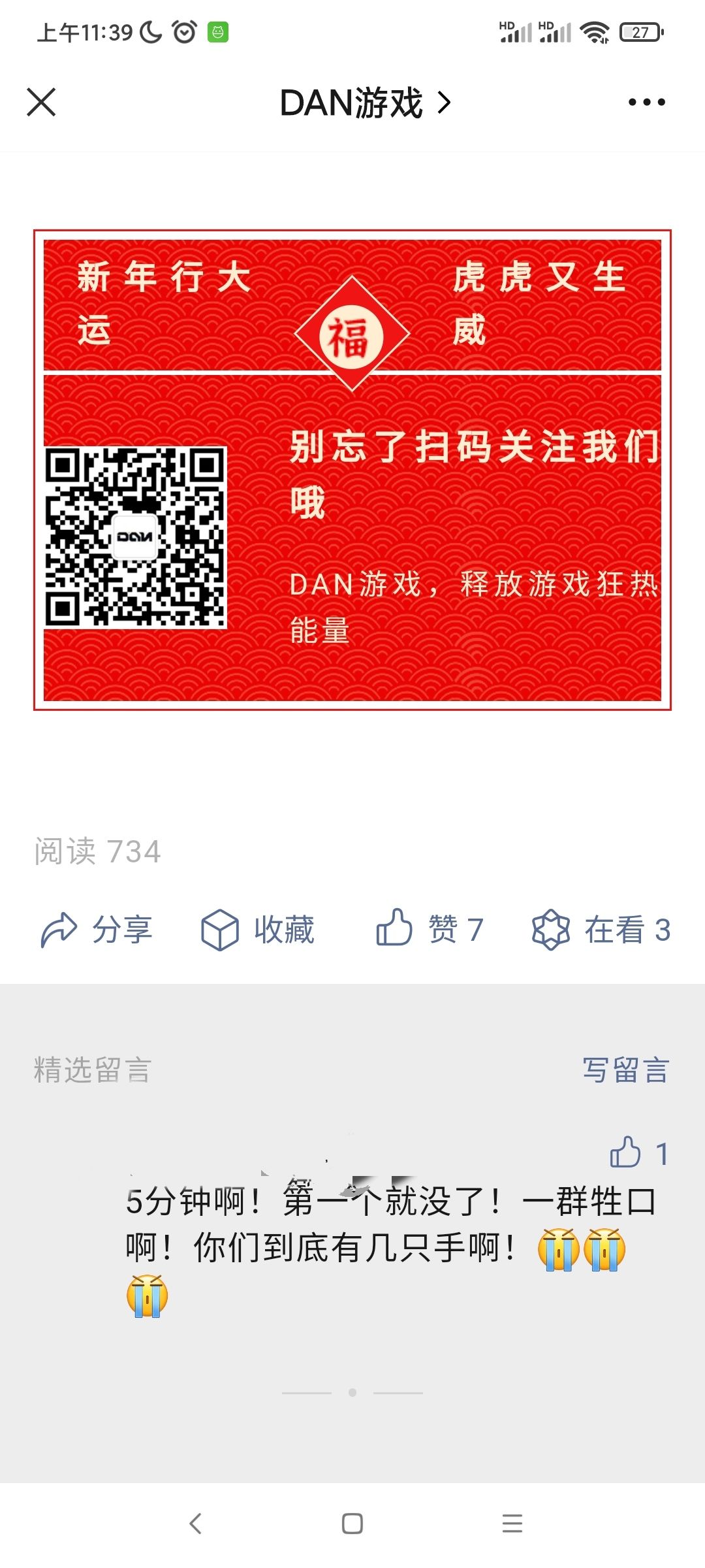 人形发了动态抽红包封面。其实先是DAN的官方微信在一天前发的,b站动态晚一天。首先庆祝人形再次诈尸(现在这个也要庆祝了吗),其次再表个决心,官方不发消息,人形就没死透。 接下来是细节分析。文章封面是玉兔,是不大熟悉的画风(油画还是水彩,我说不清)。里面的第一个红包封面是玉兔,来源是人形觉醒全渠道预约达成150w时放出的图,接玉兔接力棒的人偶大概是肃(看袖子,不是冰块遥)。第二个封面的剪影是白泽和麒麟。 接下来聊聊鄙人在评论区的所见。大部分还是与往常一样,催更的、吐槽的、刨祖坟的。但我看到一种日渐高涨的声音,就是要求退钱的。老实说,如果人形能公测,这些钱自然会以某种方式退掉的,这些同志们担心的或者说认定的只是游戏不公测,害怕公司跑路,毕竟我听说有人氪了上千甚至上万的(理性消费啊同志们),这种要求十分有道理。我还是那句话,我相信官方比我们更想公测。公众号的是DAN公司的,b站的则是人形开发组的,公众号比b站先发,就可说明很多问题。我还是在写些没人看的便宜小说,但心情已经平静许多了,或许真的无法开服,如果真的到了那个时候,我就自己给小说一个结尾,至少不能让我的十三个粉丝失望,然后再转战其他文。但我绝对不希望人形真的搁浅。绝对。 永远的提尔纳诺,永远爱你三千遍。