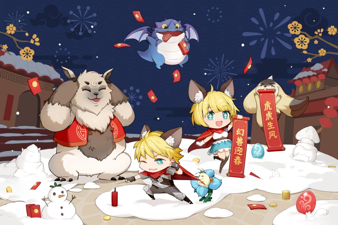 嘤嘤怪也把小幻兽和大家一起庆祝新年的画面
