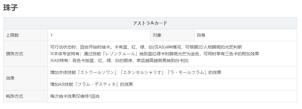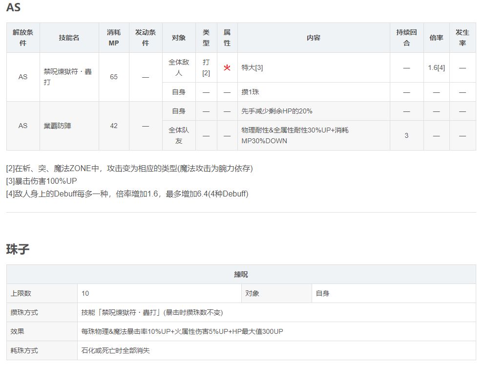 伊露露AS属于强攻定位;攒珠技能叠满可以降低50全属耐,(可惜就是上痛不是无视耐性,否则地位还能网上拉一点)搭配被动的武器伤UP,同时换阵的VC也有1次行动的必爆(VC灵晶效果为2次行动)意味着也可以作为辅助进行增伤(比如由因AS等)