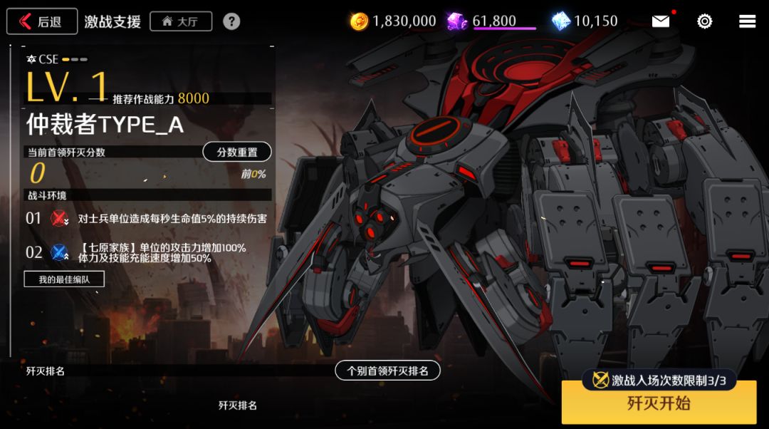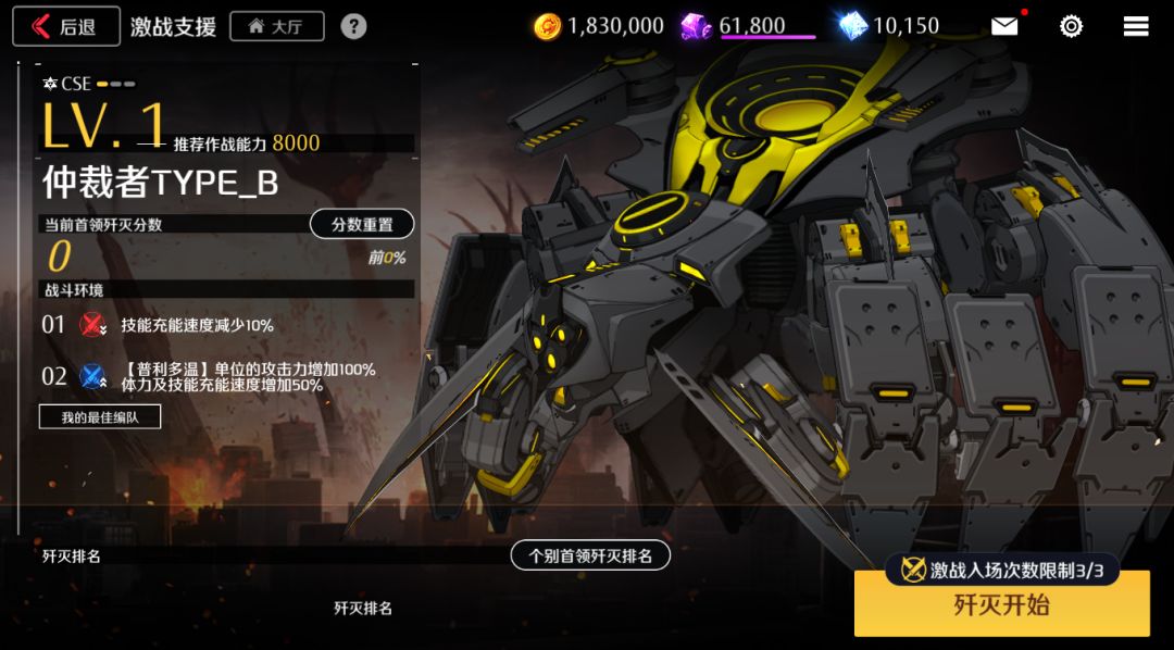 如果你只是想击败它而已,请尽量保护好你的主要输出角色以及提升他们的输出属性,仲裁者TYPE A理论上只是有点肉而已,对后排几乎没什么威胁。