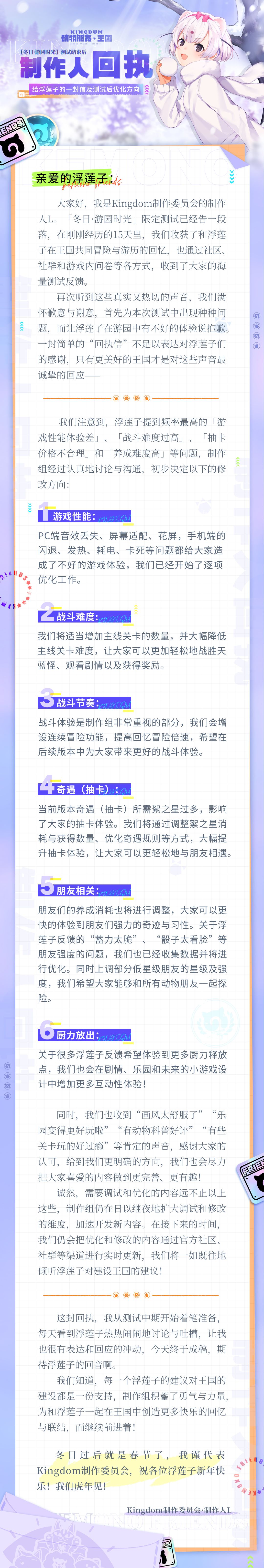 制作人回执丨给浮莲子的一封信及测试后优化方向