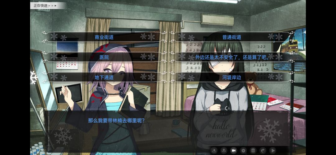 提一下前面的选项,带林楠去商业街+2food,普通街道+2魅力和2san,河堤岸边有一张CG,其他的没啥必要去选。(p4)